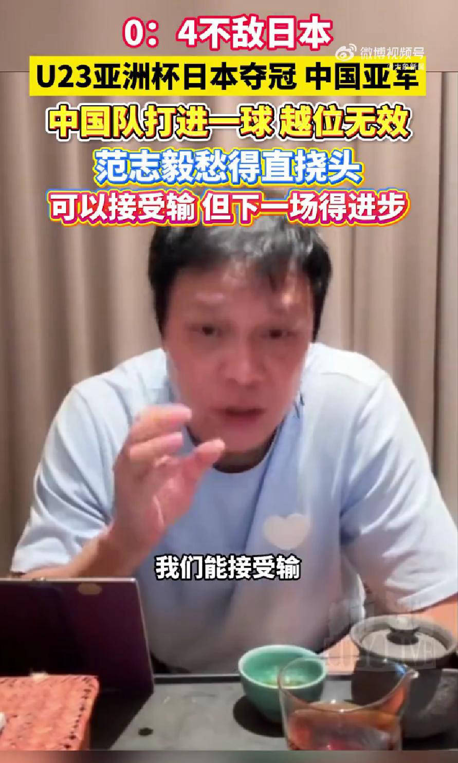 足球直播,欧洲杯直播,体育直播,球客直播,雷速体育,篮球直播,风驰直播,NBA直播,英超直播,足球比分,足球赛事,意甲,欧冠,世界杯,世界杯直播,村超,贵州村超,波胆,角球,串球,大小球2024年1月25日凌晨结束的U23亚洲杯决赛中,中国U23国足以0比4不敌日本队,最终屈居亚军。比赛结束后,中国足球名宿范志毅在直播中对比赛进行了深入点评。他表示,输球虽然令人遗憾,但可以接受;更重要的是球队要有所进步,期待接下来的比赛里能够将比分缩小到0比3甚至0比2。