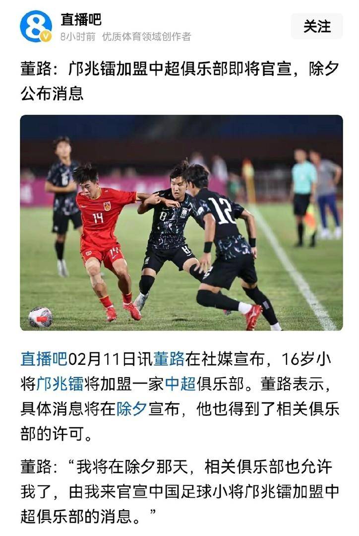 足球直播,欧洲杯直播,体育直播,球客直播,雷速体育,篮球直播,风驰直播,NBA直播,英超直播,足球比分,足球赛事,意甲,欧冠,世界杯,世界杯直播,村超,贵州村超,波胆,角球,串球,大小球当邝兆镭的名字出现在中超俱乐部注册名单上时,整个足球圈瞬间炸开了锅。 这位刚满14岁的少年,成了国内职业联赛史上最年轻的注册球员之一。 没人想到,几个月前董路与网友的一场玩笑赌约,竟真的照进了现实。
