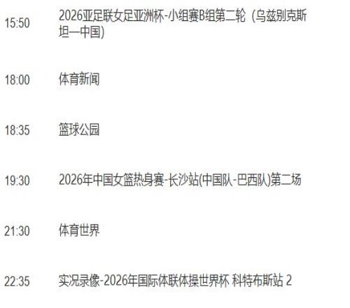 足球直播,欧洲杯直播,体育直播,球客直播,雷速体育,篮球直播,风驰直播,NBA直播,英超直播,足球比分,足球赛事,意甲,欧冠,世界杯,世界杯直播,村超,贵州村超,波胆,角球,串球,大小球3月2日,新的一周开始。本周,2026赛季中超联赛将在星期五正式打响,首轮8场比赛将在3个比赛日进行。不过,央视每周最新节目单显示,央视体育频道(CCTV5)、体育赛事频道(CCTV5+)都暂时没有安排中超首轮的直播。不知道这是尚未谈妥敲定转播权,还是央视节目单目前尚未更新。