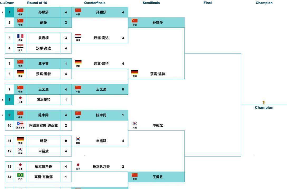 王曼昱今天的对手申裕斌状态正佳。 这位韩国选手在昨天的四分之一决赛中以4比1淘汰了中国选手陈幸同,其中第四局更是打出了11比0的悬殊比分,展现出了爆棚的状态和强大的冲击力。 申裕斌近期的进步有目共睹,在今年2月的新加坡大满贯赛中,她就曾与王曼昱打出了21比19的高分,虽然最终以1比3落败,但已经给王曼昱制造了足够的麻烦。从历史交锋记录来看,王曼昱对申裕斌保持着全胜,拥有心理优势。但考虑到王曼昱昨天消耗了大量体能,而申裕斌则是以相对轻松的方式晋级,这场比赛的胜负存在一定悬念。