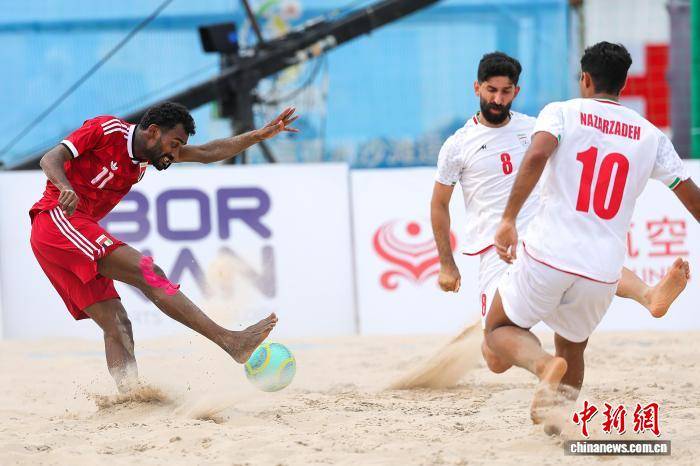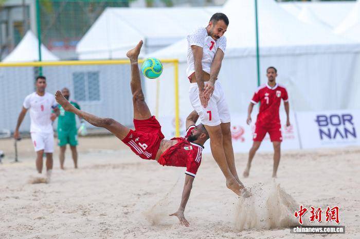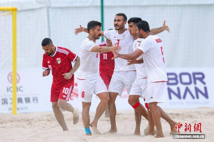 足球直播,欧洲杯直播,体育直播,球客直播,雷速体育,篮球直播,风驰直播,NBA直播,英超直播,足球比分,足球赛事,意甲,欧冠,世界杯,世界杯直播,村超,贵州村超,波胆,角球,串球,大小球4月23日,第六届亚洲沙滩运动会沙滩足球项目在海南三亚开赛。在当日进行的男子小组赛中,伊朗队(白衣)以5比2战胜阿联酋队,取得开门红。图为双方球员在比赛结束后击掌致意。 记者 骆云飞 摄